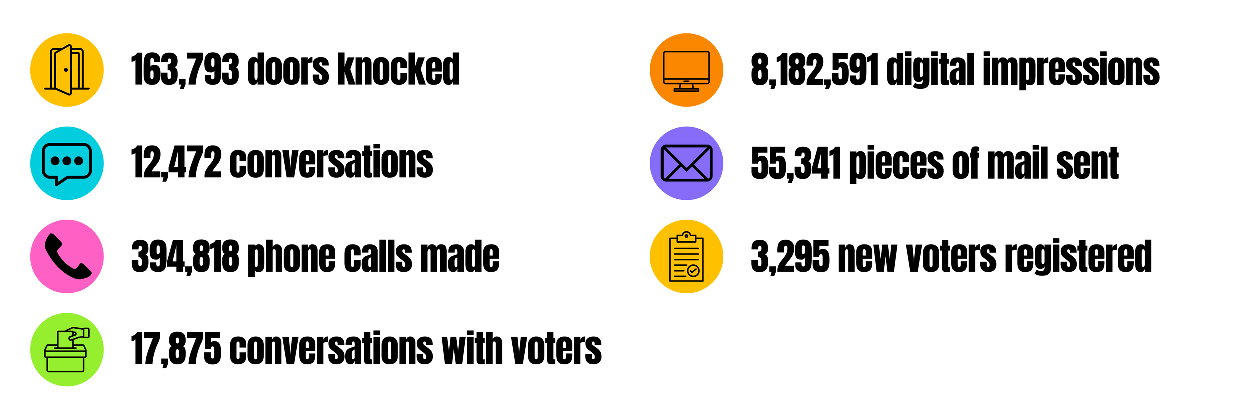 In 2025, our partners made 1,182,964 attempts to reach people across the state. We connected with communities by knocking on doors, making calls, and sending texts to ensure every voice had a chance to be heard.